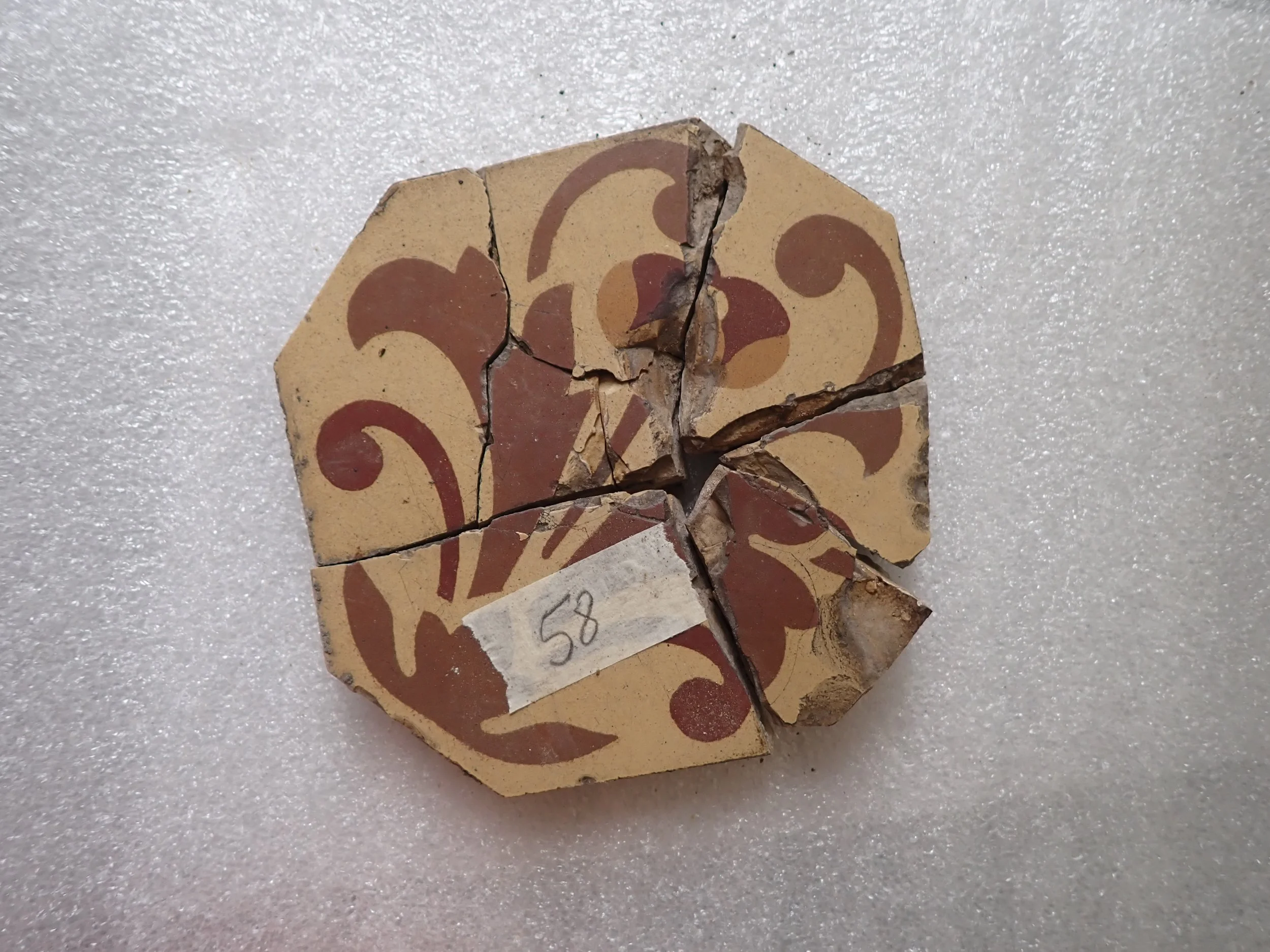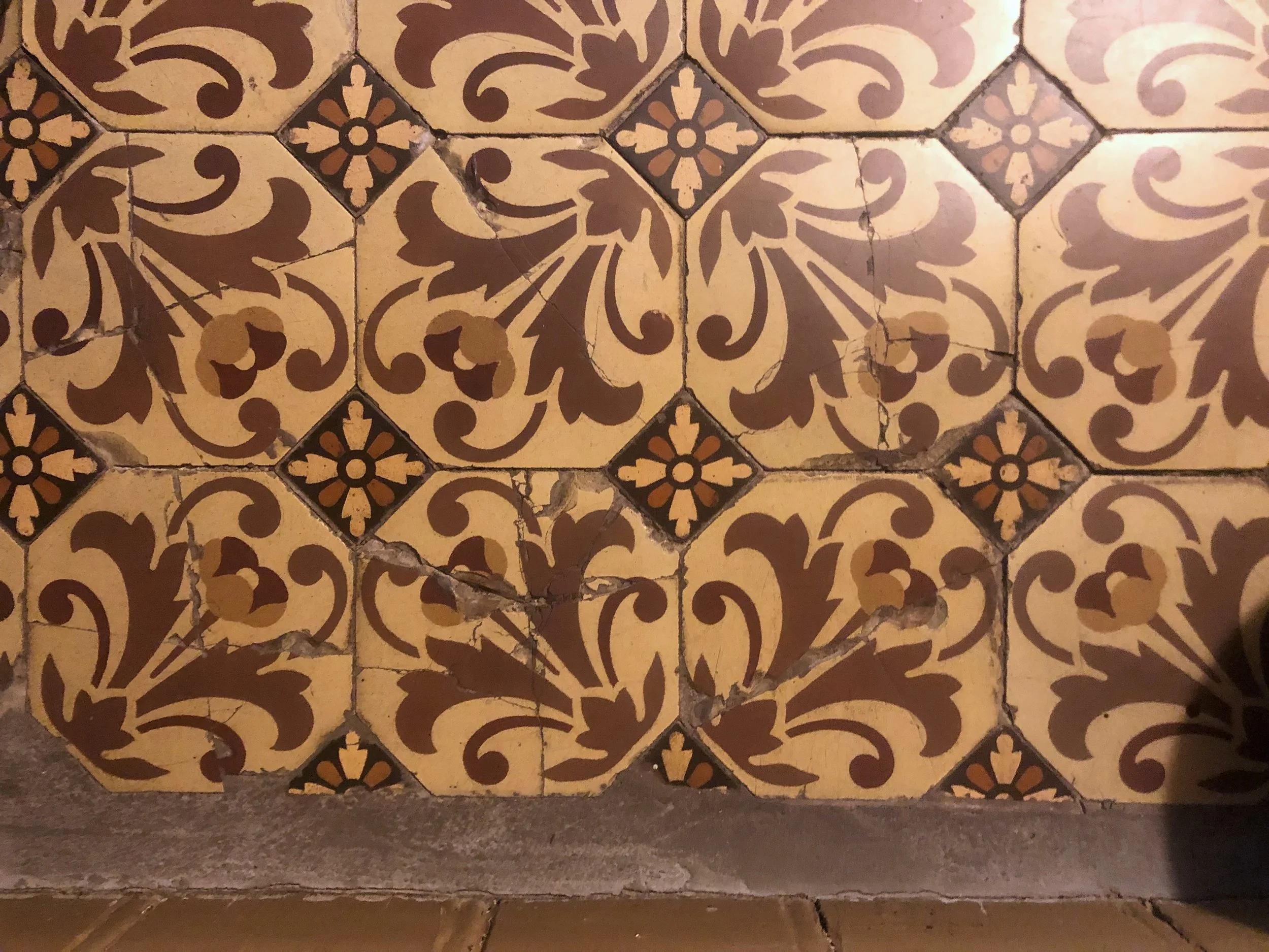 Bijna de helft van de tegels was gebarsten en had meerdere lacunes.